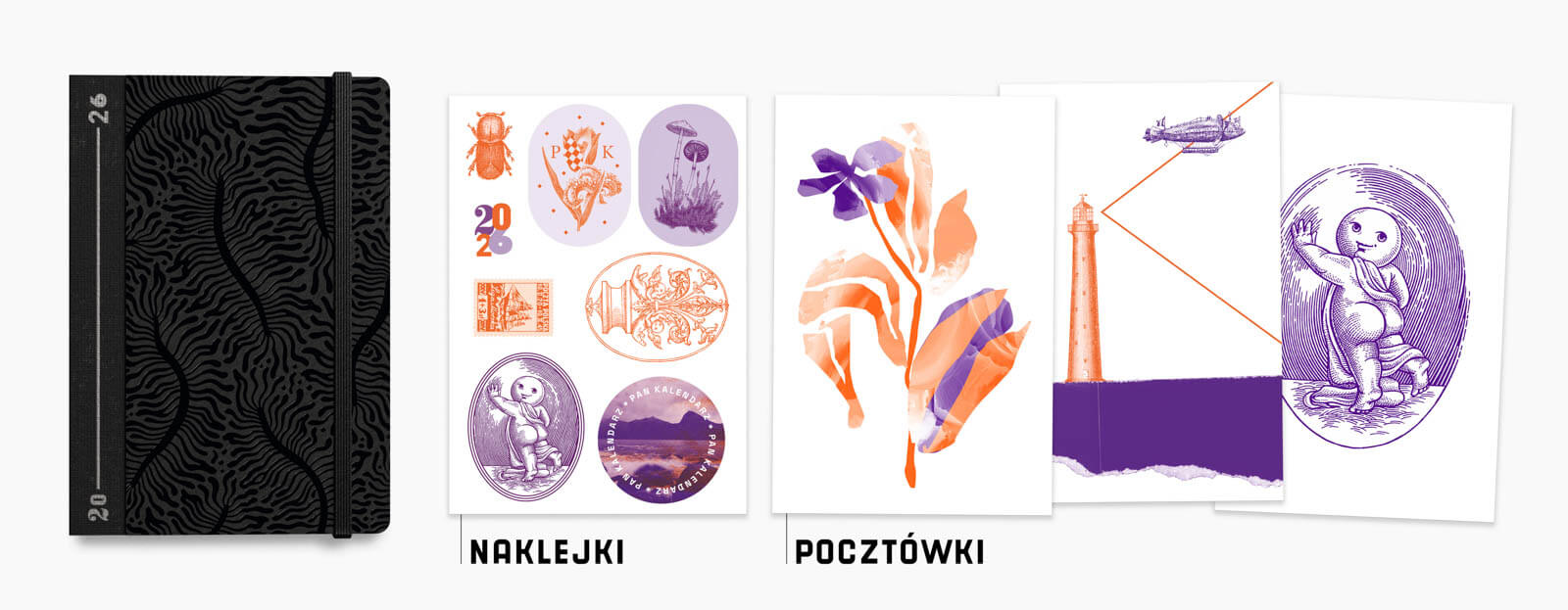 Pan Kalendarz to artystyczny kalendarz książkowy w poręcznym formacie. Każdy miesiąc opowiada inną historię graficzną — a Ty zapisujesz w nim swoją. Papier idealny do pisania piórem, gumka, tasiemka-zakładka, kieszonka i unikalna oprawa… a do tego kilka wersji okładek.