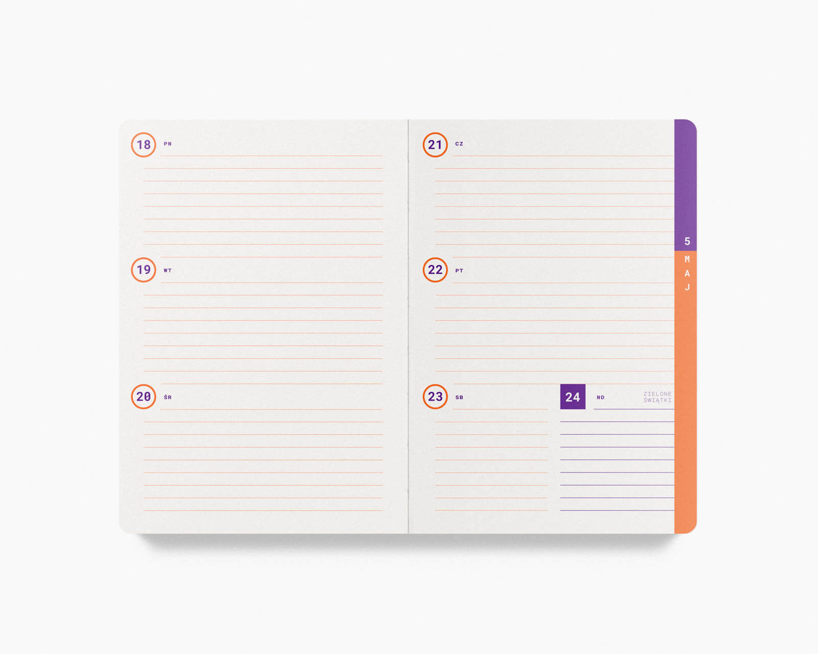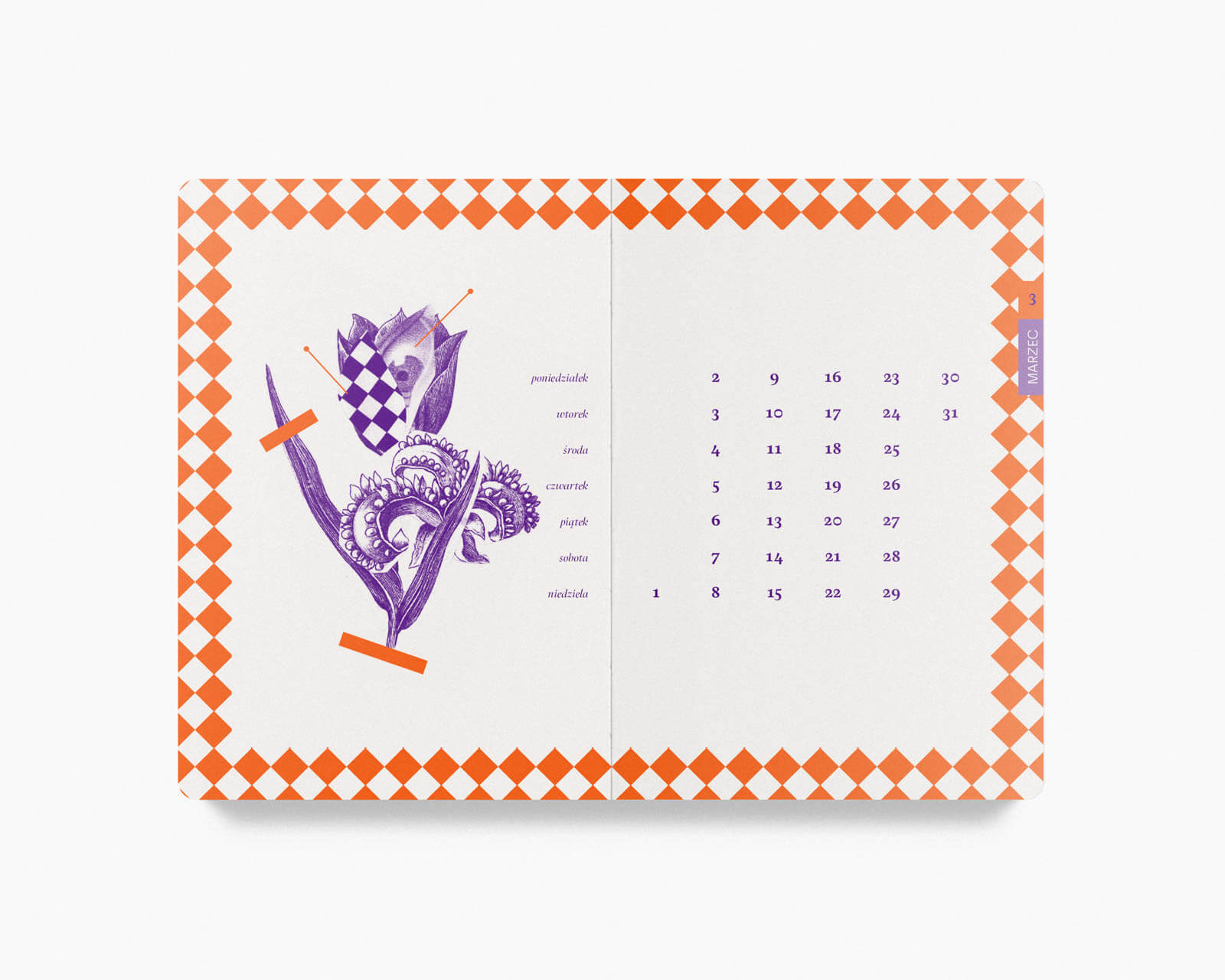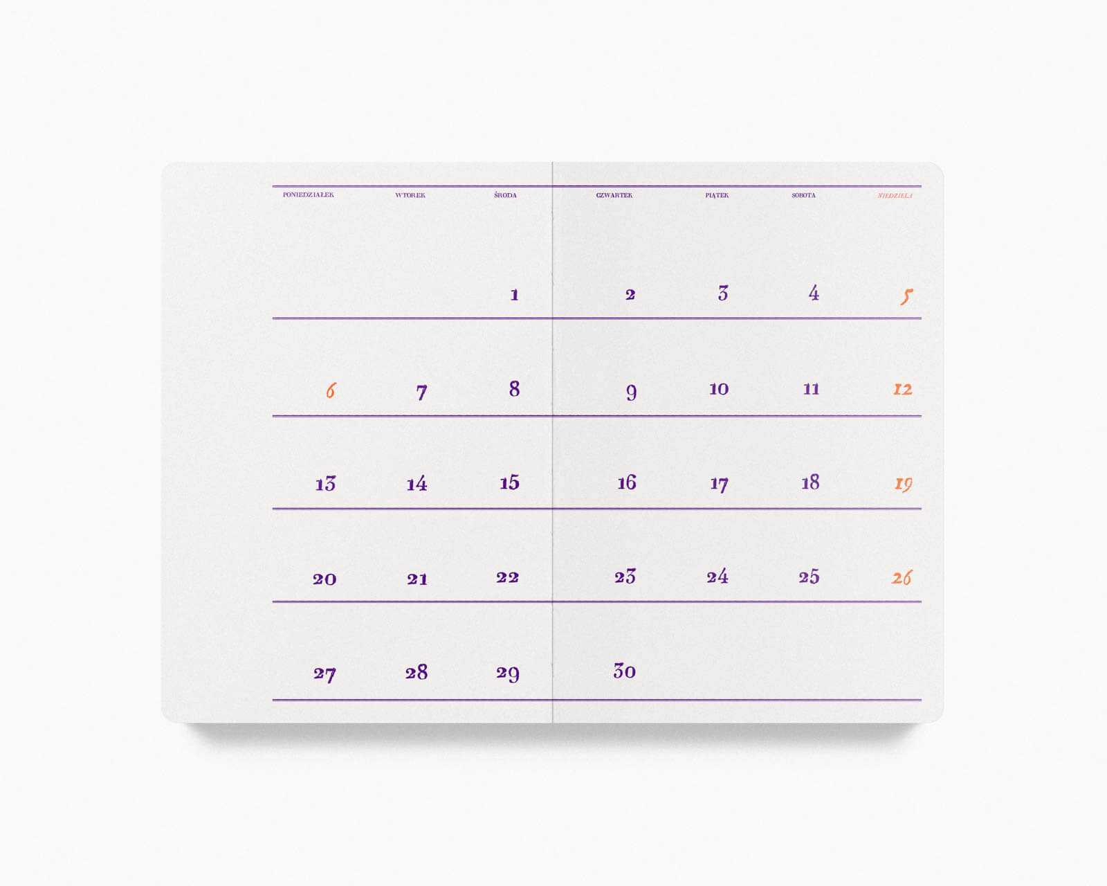 Pan Kalendarz to artystyczny kalendarz książkowy w poręcznym formacie. Każdy miesiąc opowiada inną historię graficzną — a Ty zapisujesz w nim swoją. Papier idealny do pisania piórem, gumka, tasiemka-zakładka, kieszonka i unikalna oprawa… a do tego kilka wersji okładek.