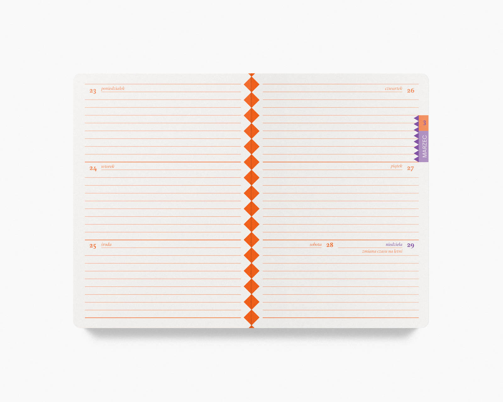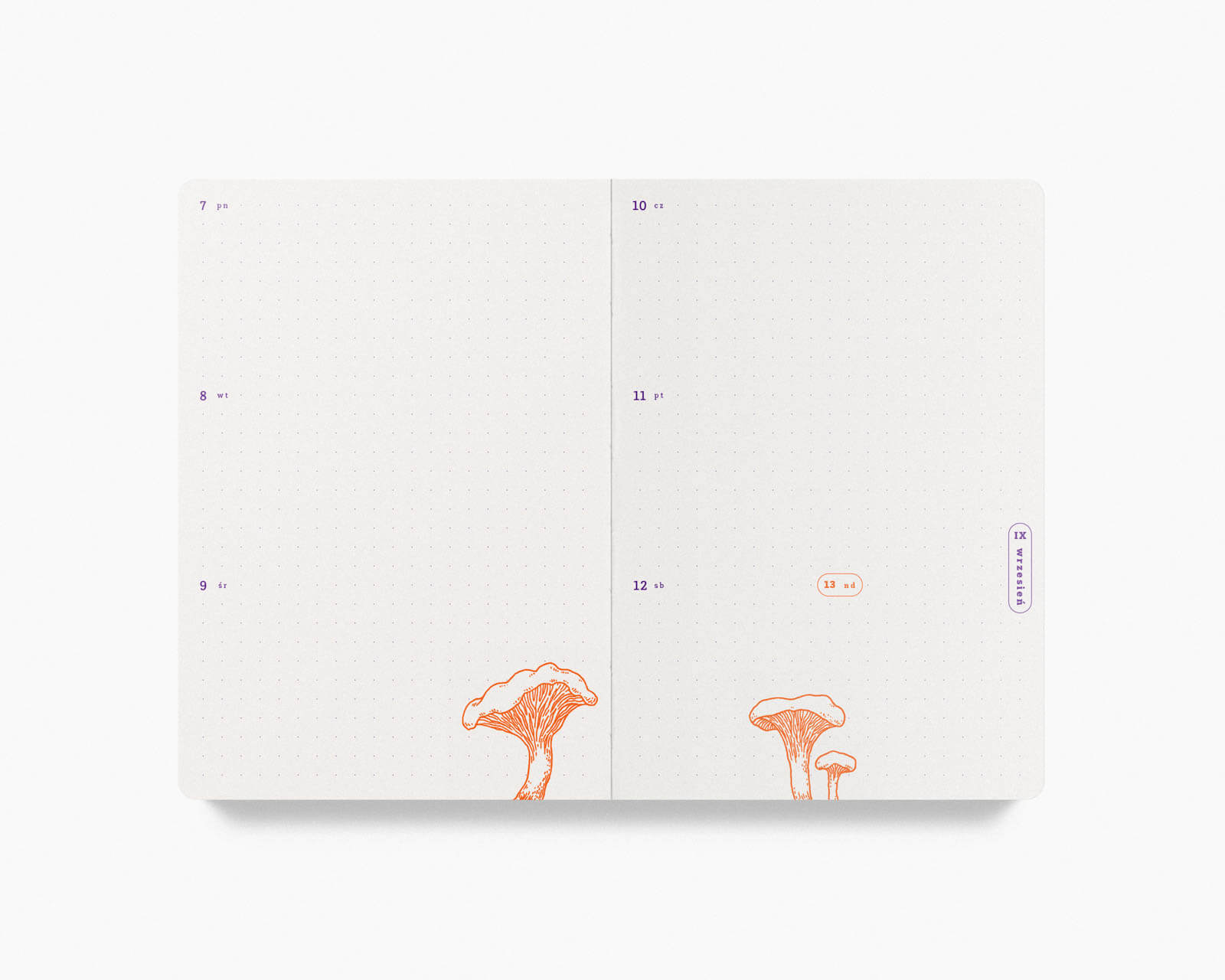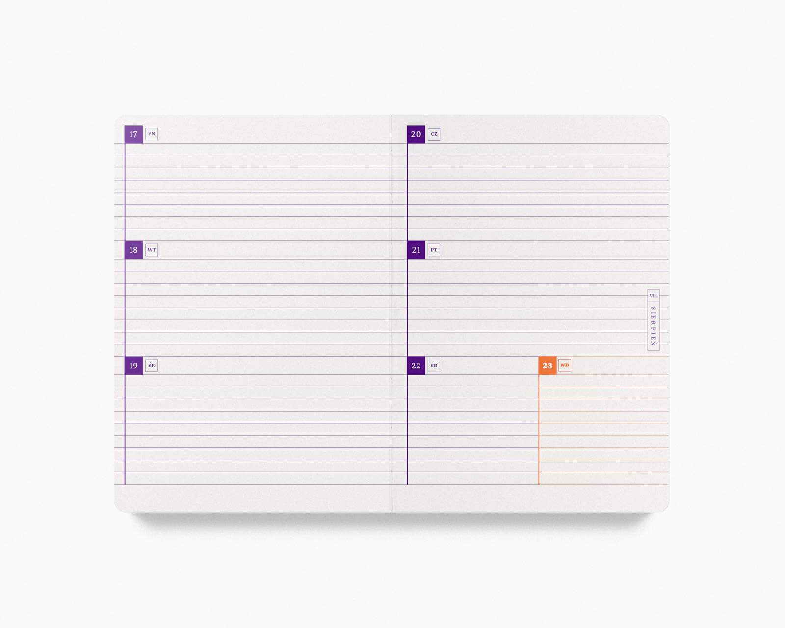 Pan Kalendarz to artystyczny kalendarz książkowy w poręcznym formacie. Każdy miesiąc opowiada inną historię graficzną — a Ty zapisujesz w nim swoją. Papier idealny do pisania piórem, gumka, tasiemka-zakładka, kieszonka i unikalna oprawa… a do tego kilka wersji okładek.
