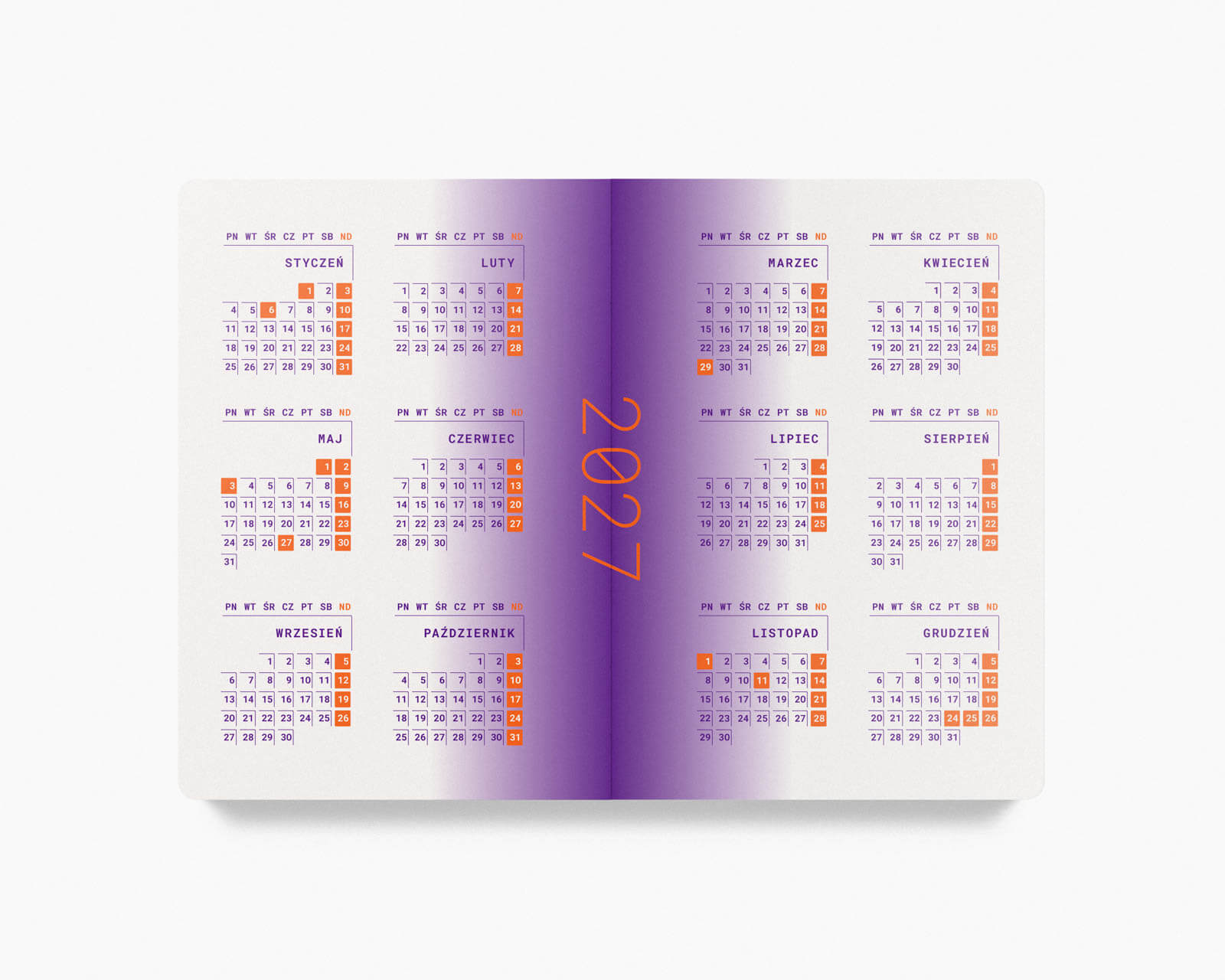 Stworzony z pasji, zaprojektowany z myślą o codziennym użyciu — Pan Kalendarz to nie zwykły planner, lecz towarzysz Twojego roku. W eleganckim, kompaktowym formacie 115×165 mm zmieści się w torbie, biurku i podróży. Wysokiej jakości papier Munken Premium Cream pozwala pisać piórem bez obaw, a solidna, otwierana na płasko oprawa, gumka, tasiemka i kieszonka dodają funkcjonalności. Co miesiąc — nowa podróż graficzna, nowy klimat.